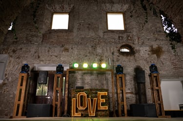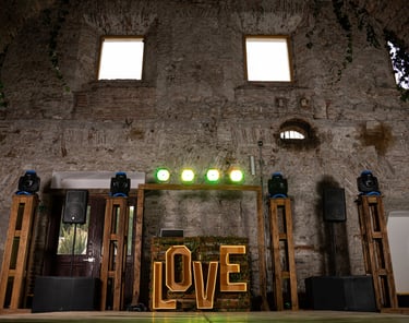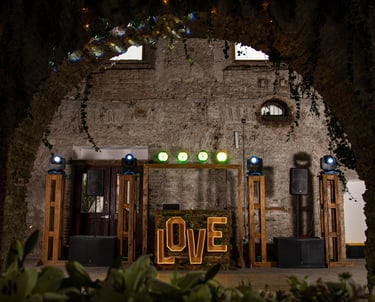 Programación por escenas (entrada, vals, fiesta) para momentos wow, tocada por nuestros LG (light jockey) en vivo